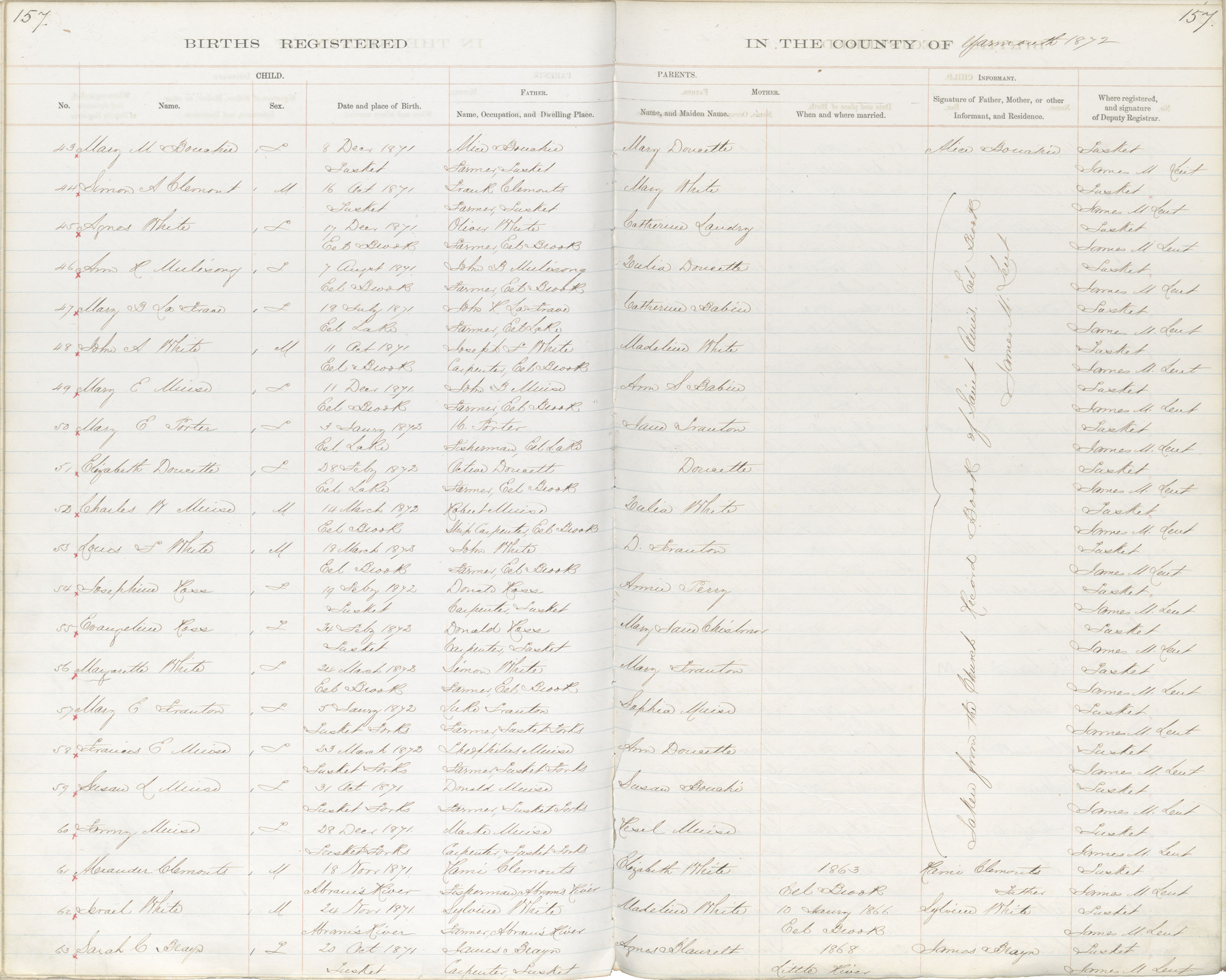 Birth Registration: Year: 1871 book: 1823 page: 157 number: 43