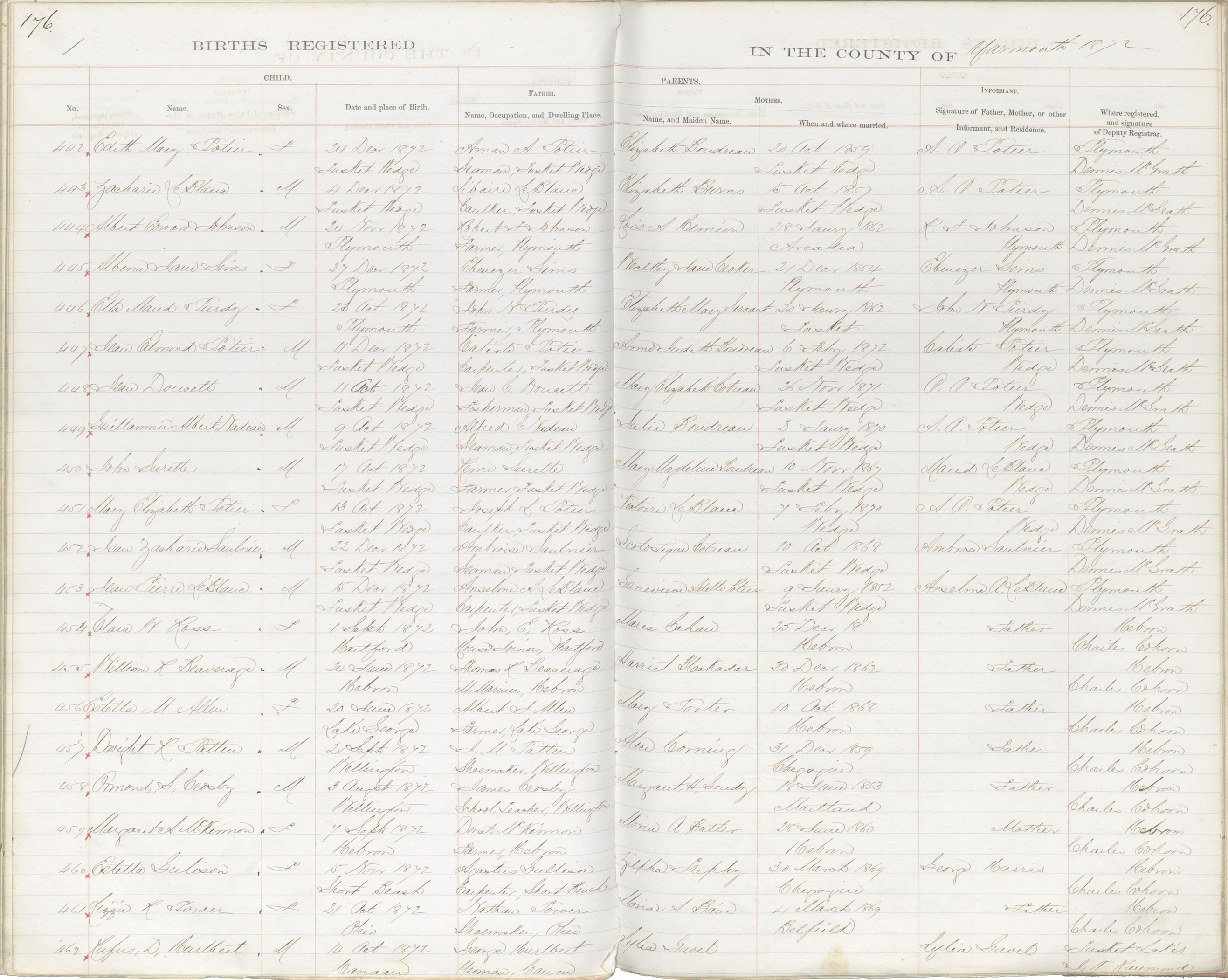 Birth Registration: Year: 1872 book: 1823 page: 176 number: 445