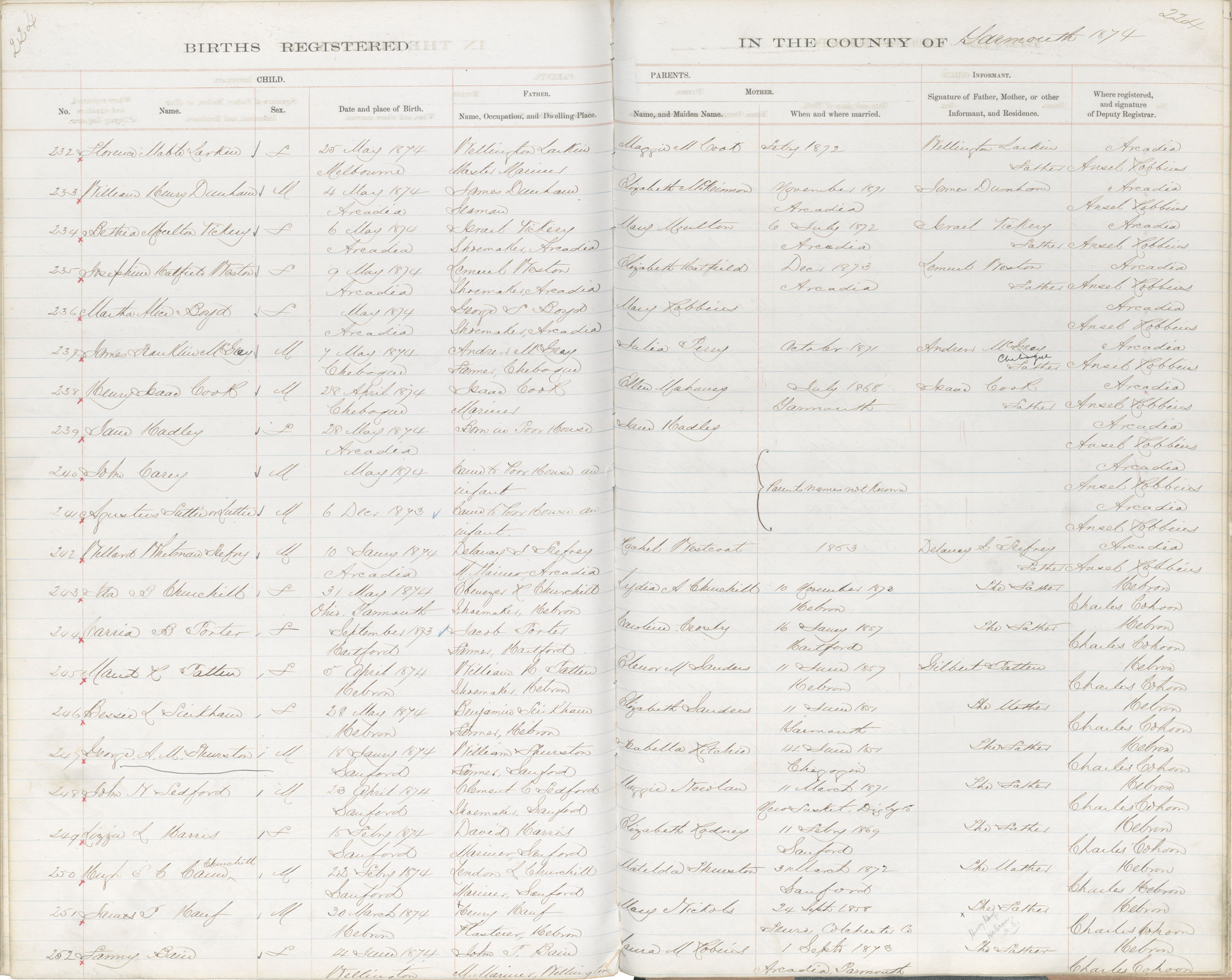 Birth Registration: Year: 1874 book: 1823 page: 224 number: 252