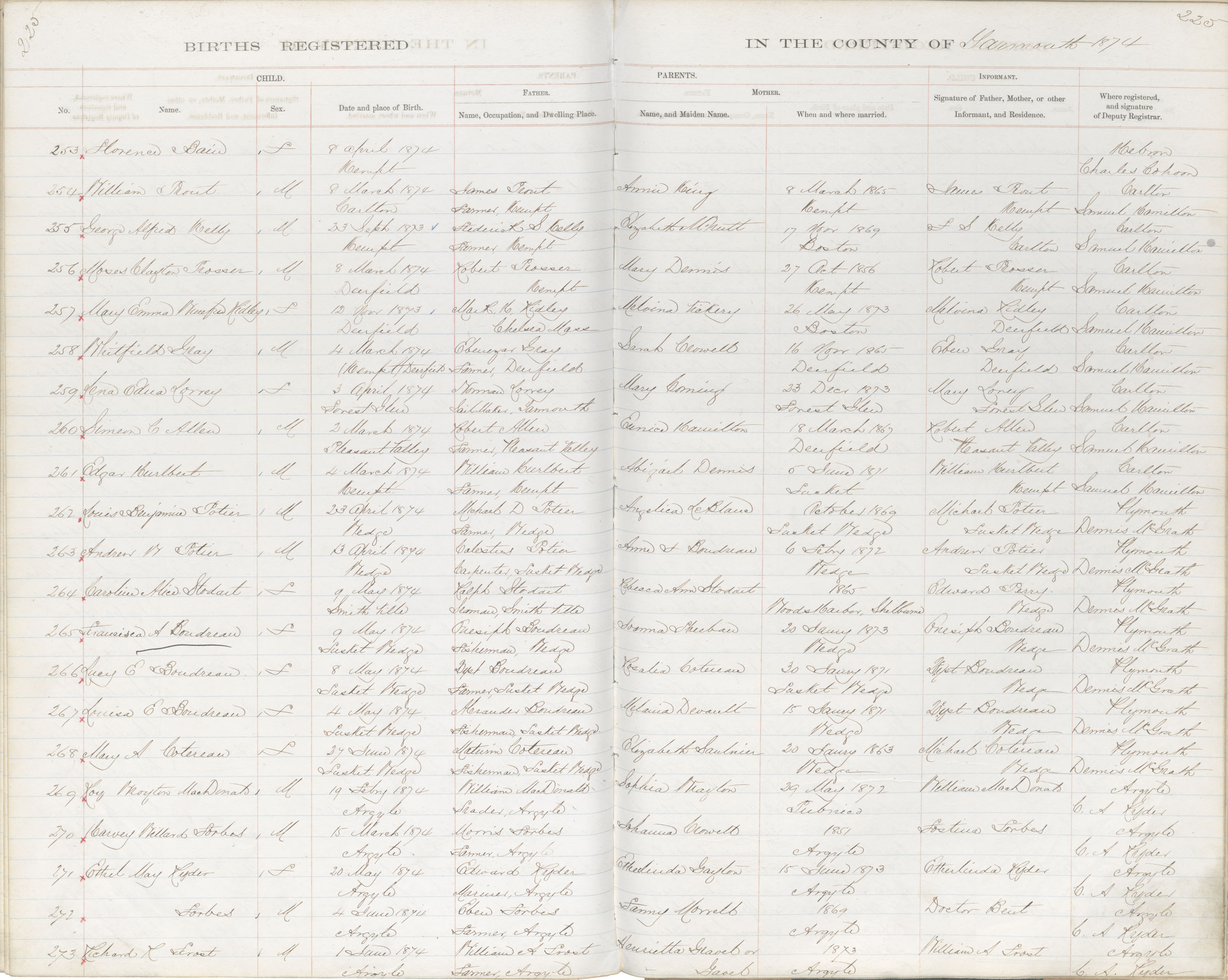 Birth Registration: Year: 1874 book: 1823 page: 225 number: 269
