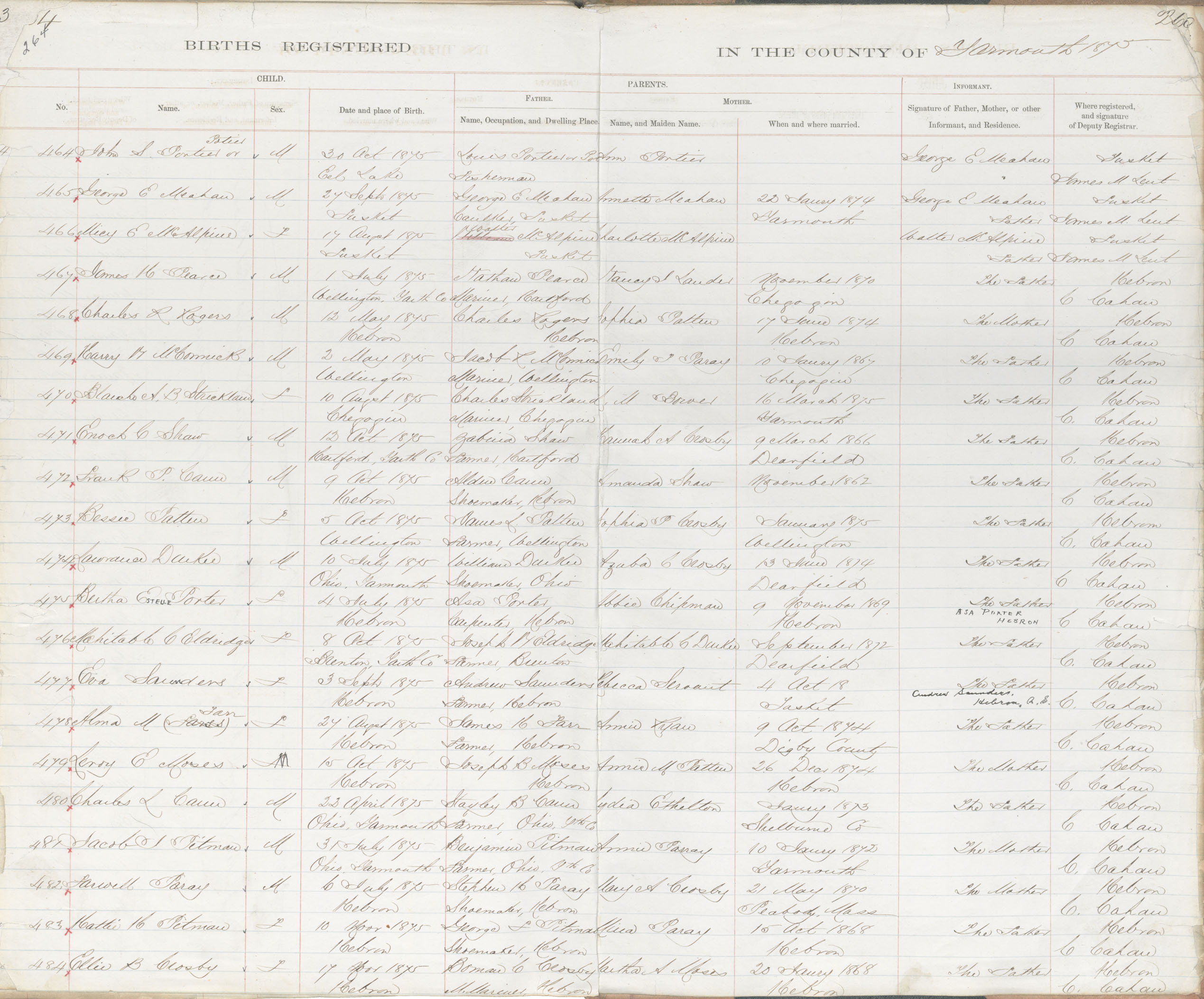 Birth Registration: Year: 1875 book: 1823 page: 264 number: 484