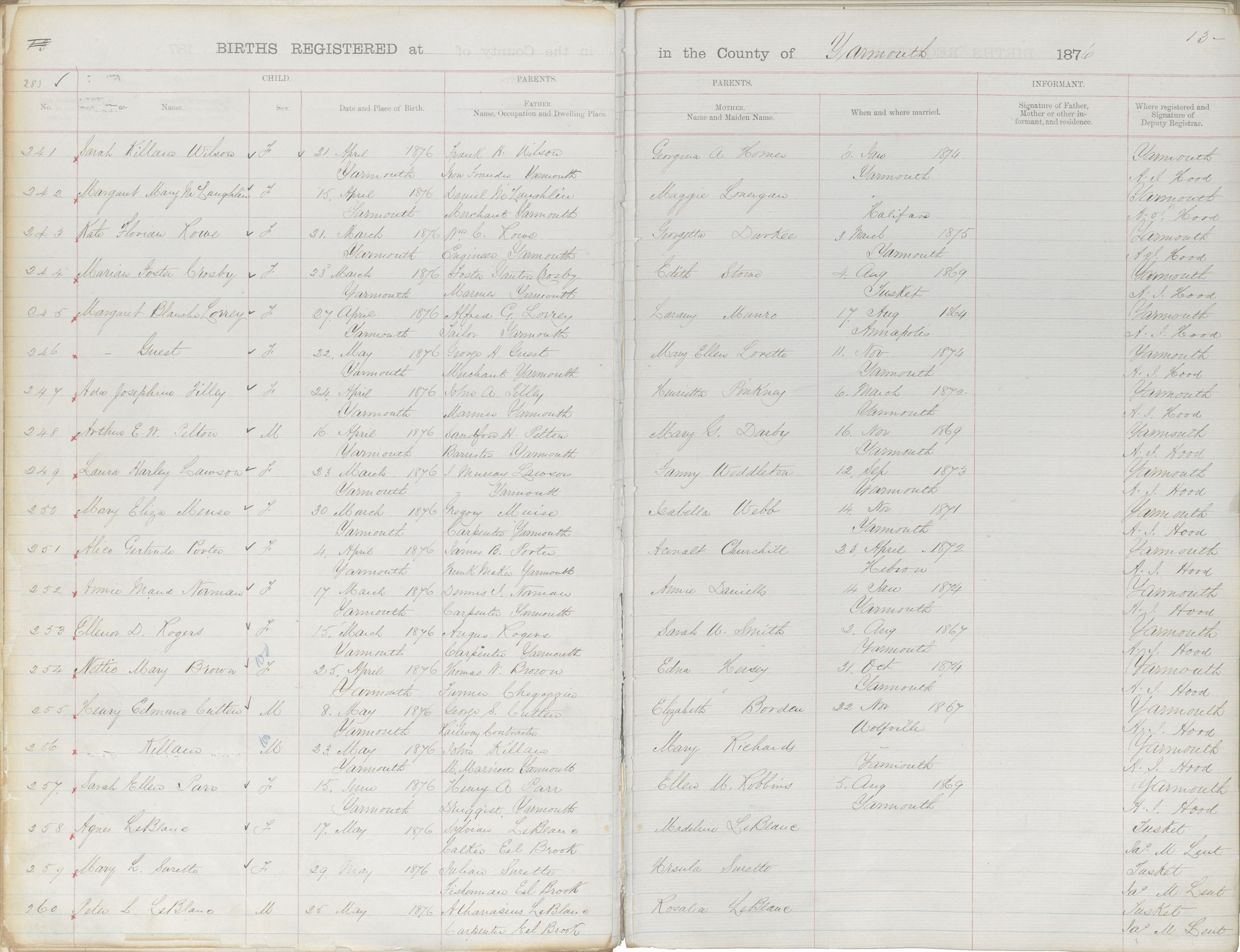 Birth Registration: Year: 1876 book: 1823 page: 283 number: 241