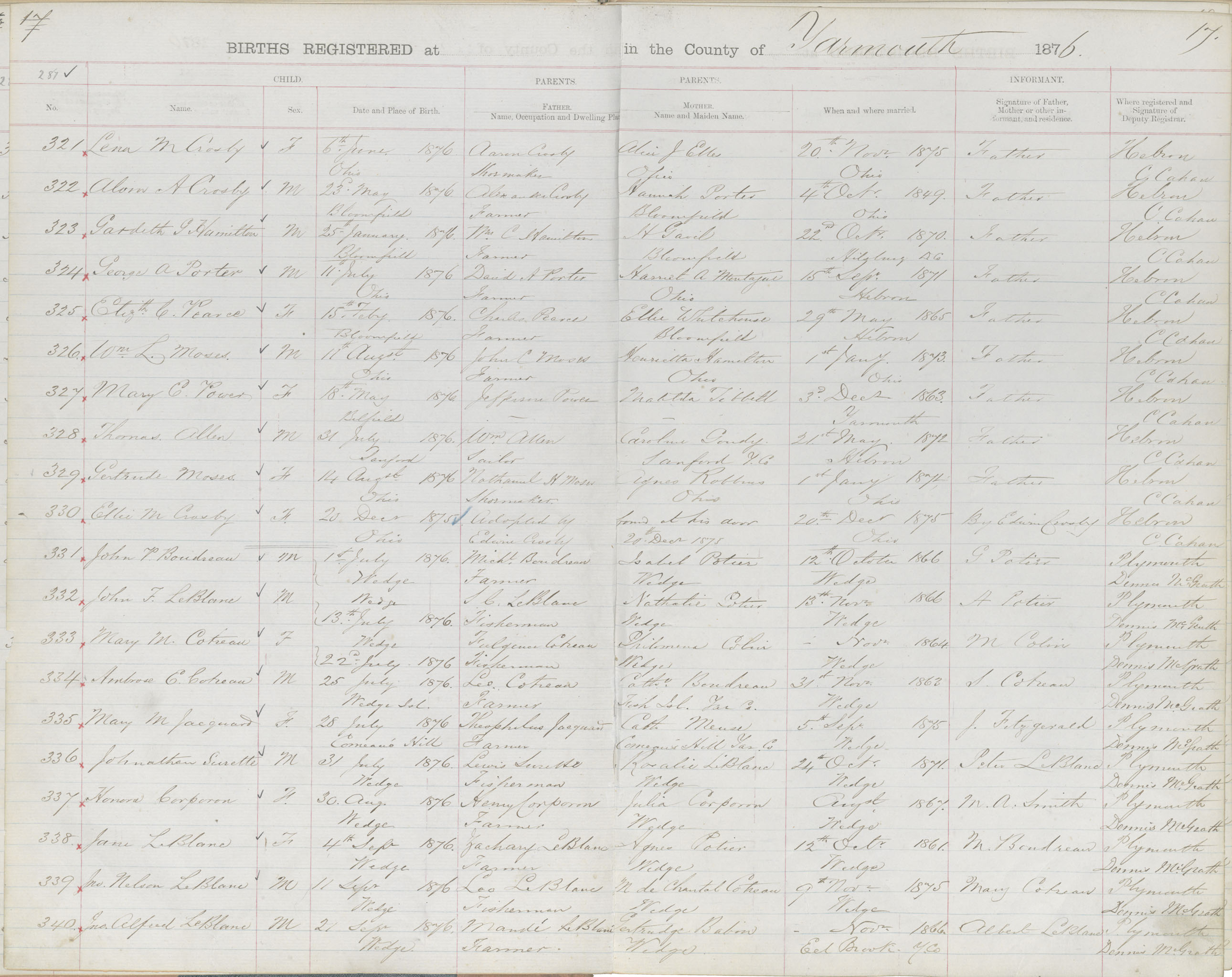 Birth Registration: Year: 1876 book: 1823 page: 287 number: 321