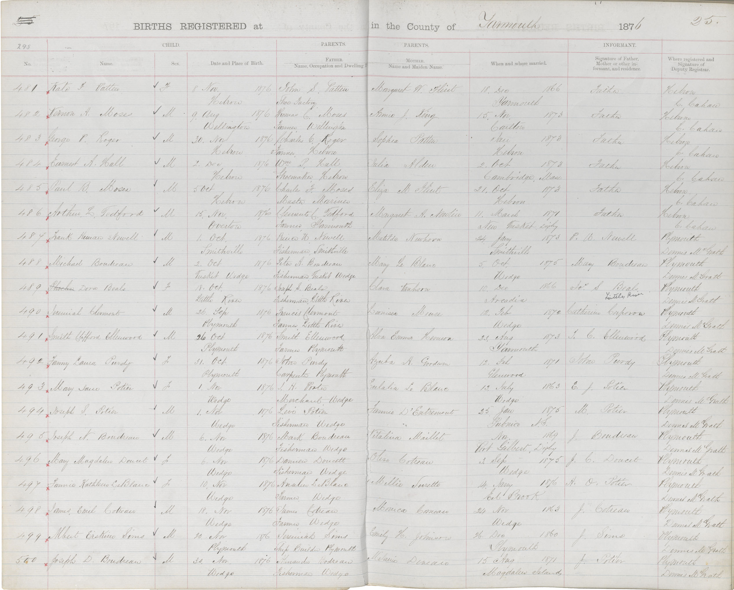 Birth Registration: Year: 1876 book: 1823 page: 295 number: 499
