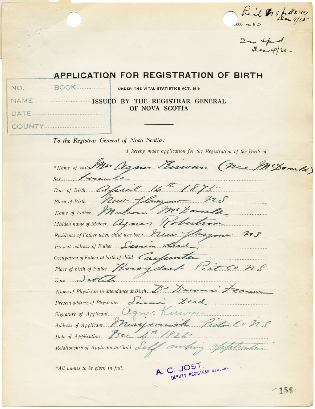 Nova Scotia Archives — https://archives.novascotia.ca/vital-statistics/birth/?ID=111948