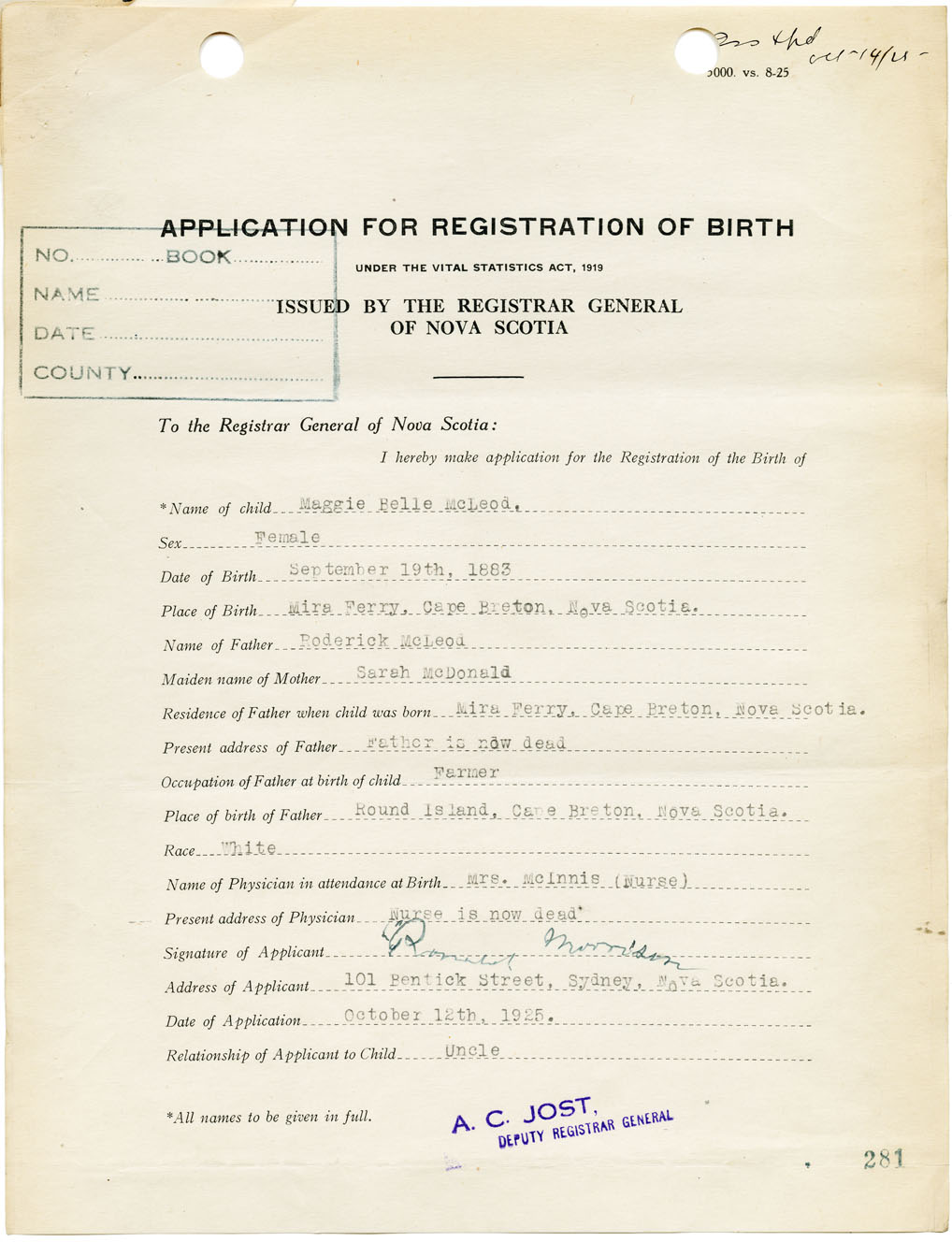 Nova Scotia Archives — https://archives.novascotia.ca/vital-statistics/birth/?ID=116341