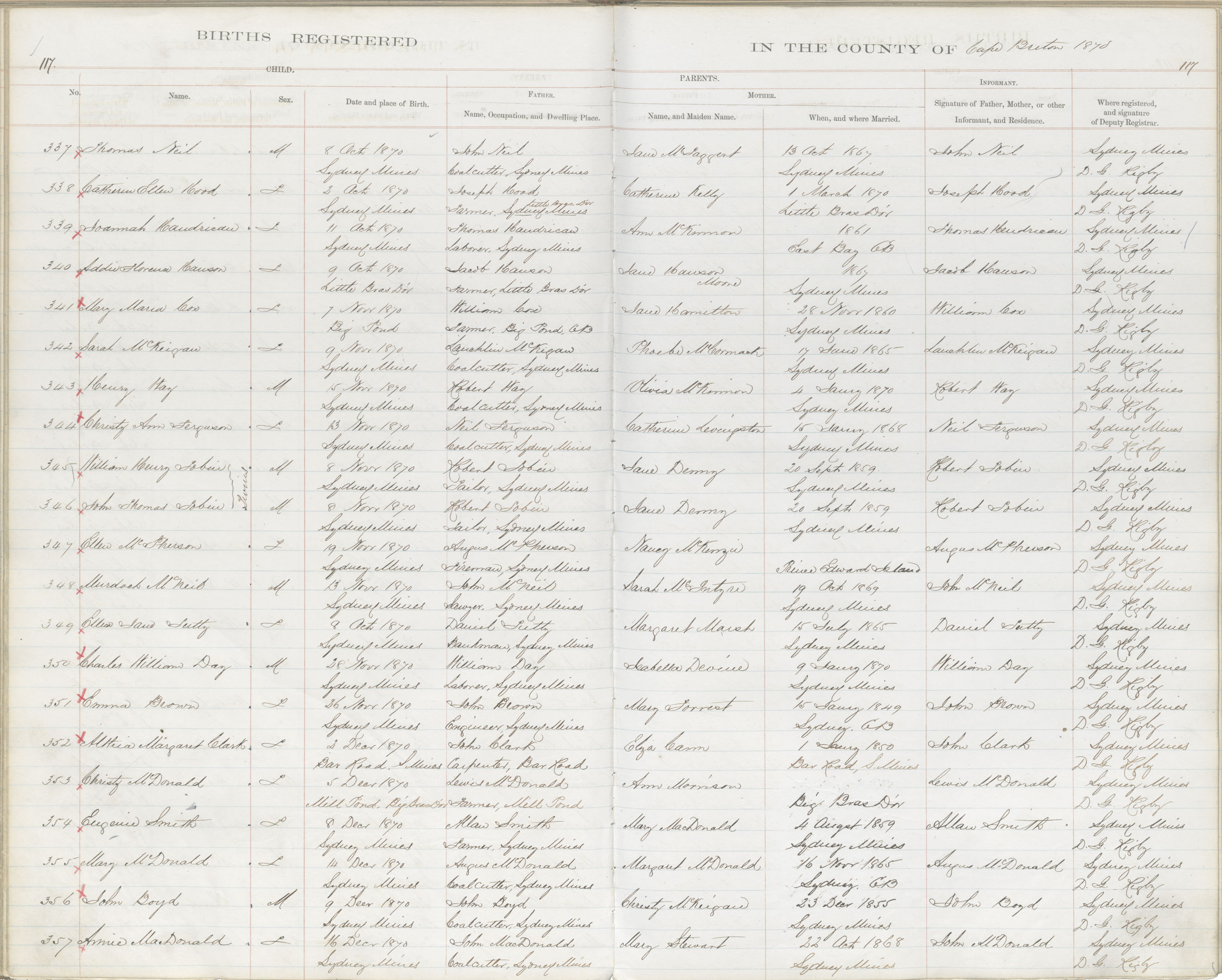 Female Birth Registration: Year: 1870 book: 1803 page: 117 number: 357