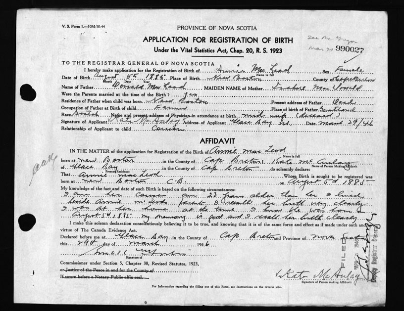 Nova Scotia Archives — https://archives.novascotia.ca/vital-statistics/birth/?ID=118401