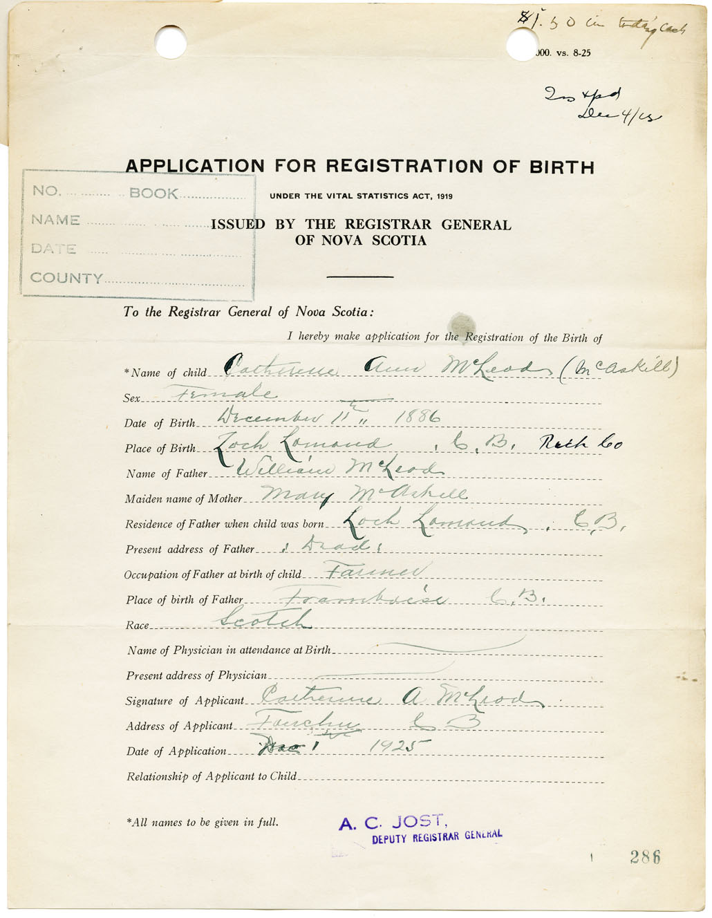 Nova Scotia Archives — https://archives.novascotia.ca/vital-statistics/birth/?ID=119510