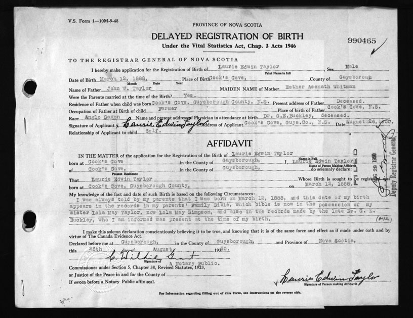 Nova Scotia Archives — https://archives.novascotia.ca/vital-statistics/birth/?ID=122409