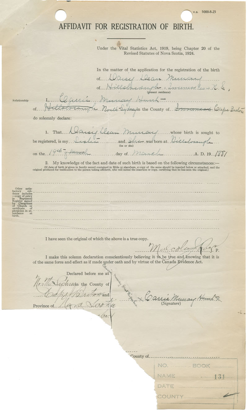 Nova Scotia Archives — https://archives.novascotia.ca/vital-statistics/birth/?ID=126485