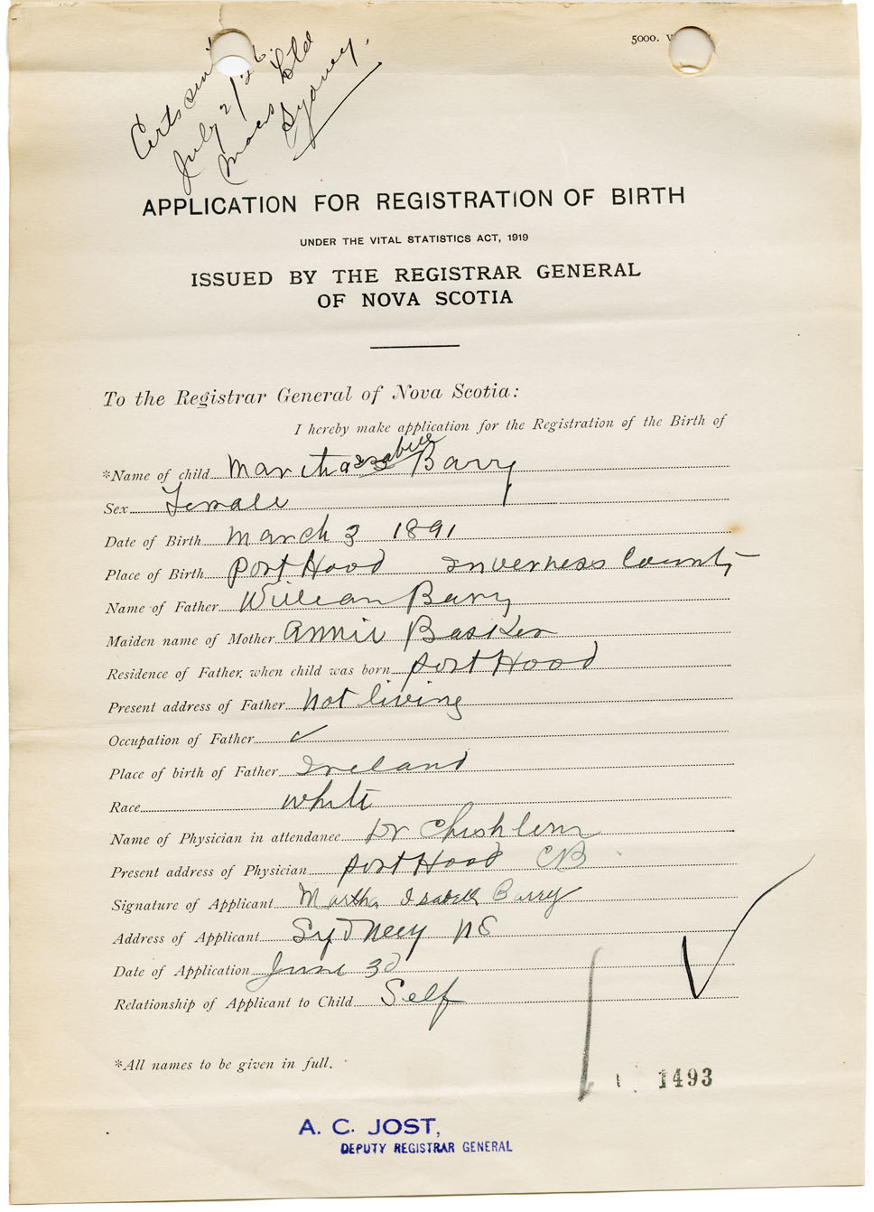Nova Scotia Archives — https://archives.novascotia.ca/vital-statistics/birth/?ID=126499