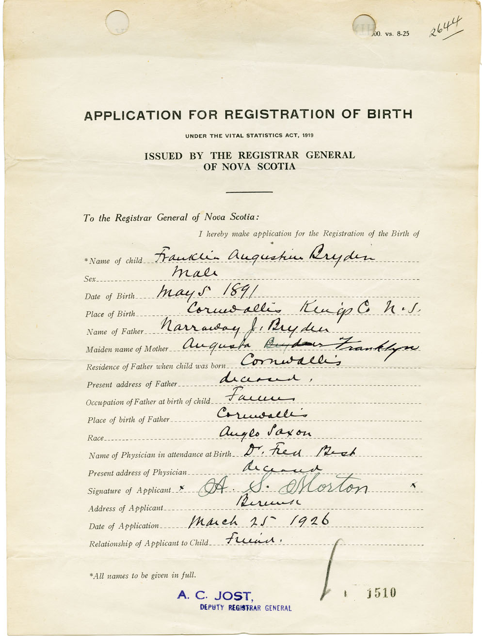 Nova Scotia Archives — https://archives.novascotia.ca/vital-statistics/birth/?ID=126500