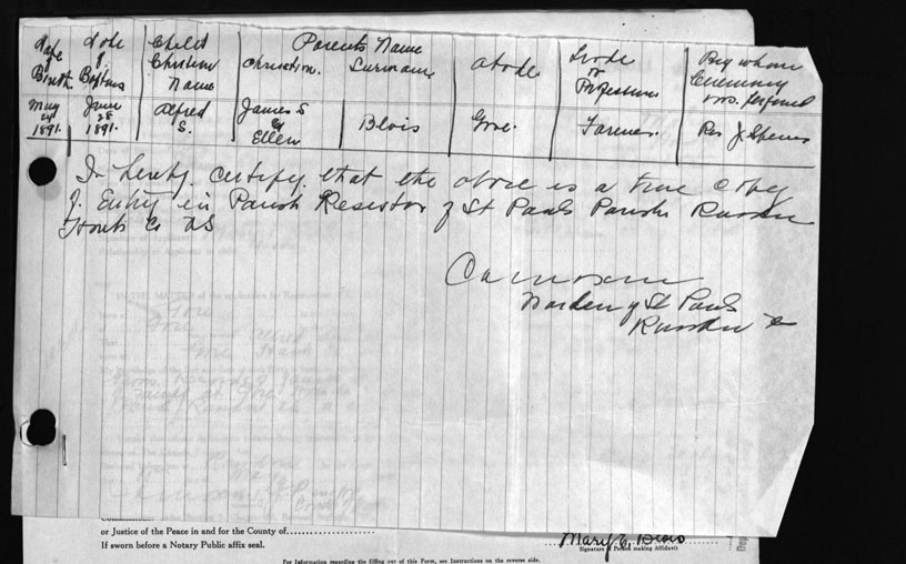 Birth Registration: Year: 1891 number: 99000011