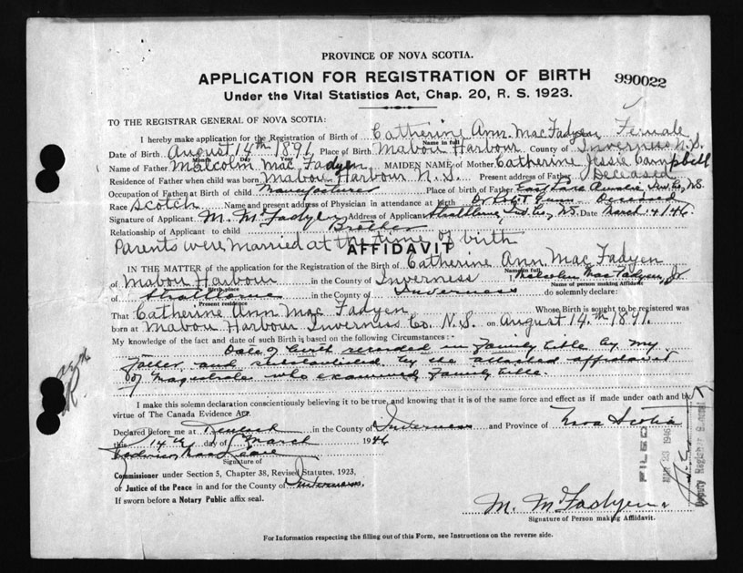 Nova Scotia Archives — https://archives.novascotia.ca/vital-statistics/birth/?ID=126524