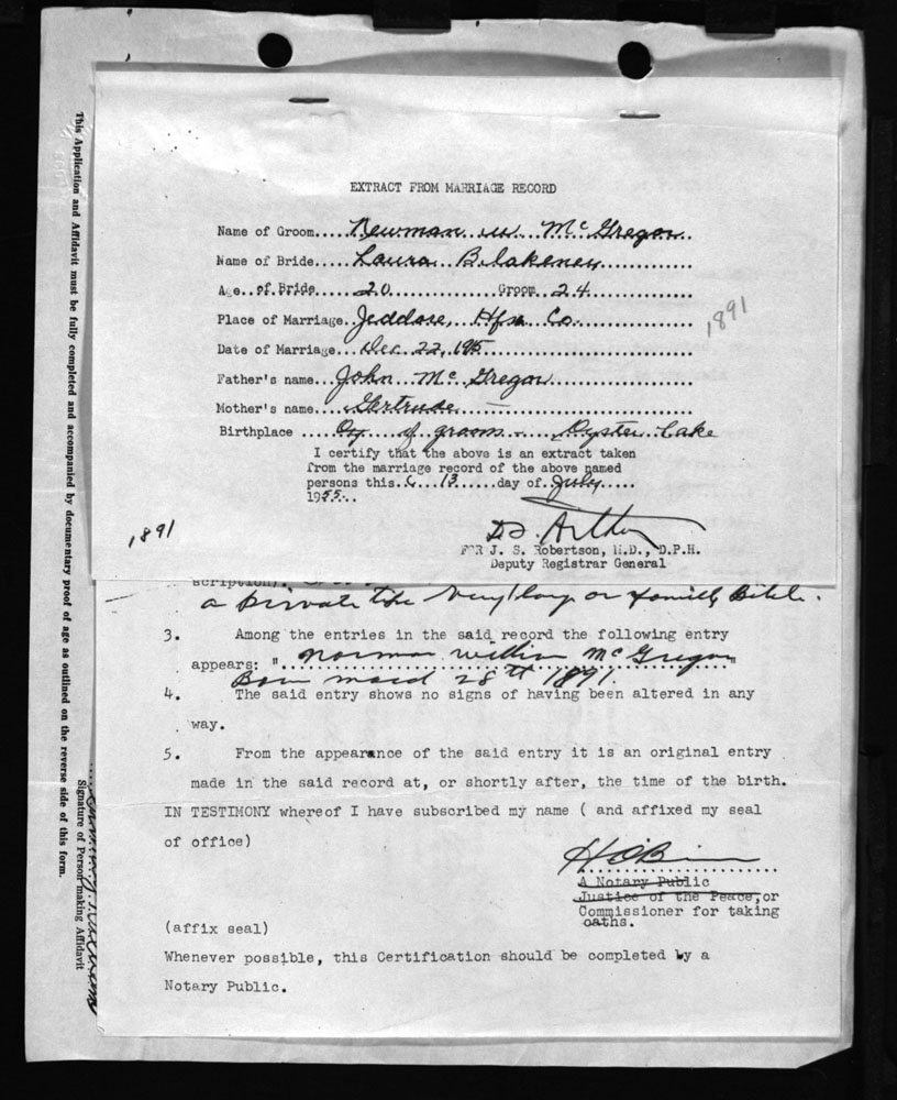 Birth Registration: Year: 1891 number: 99000922