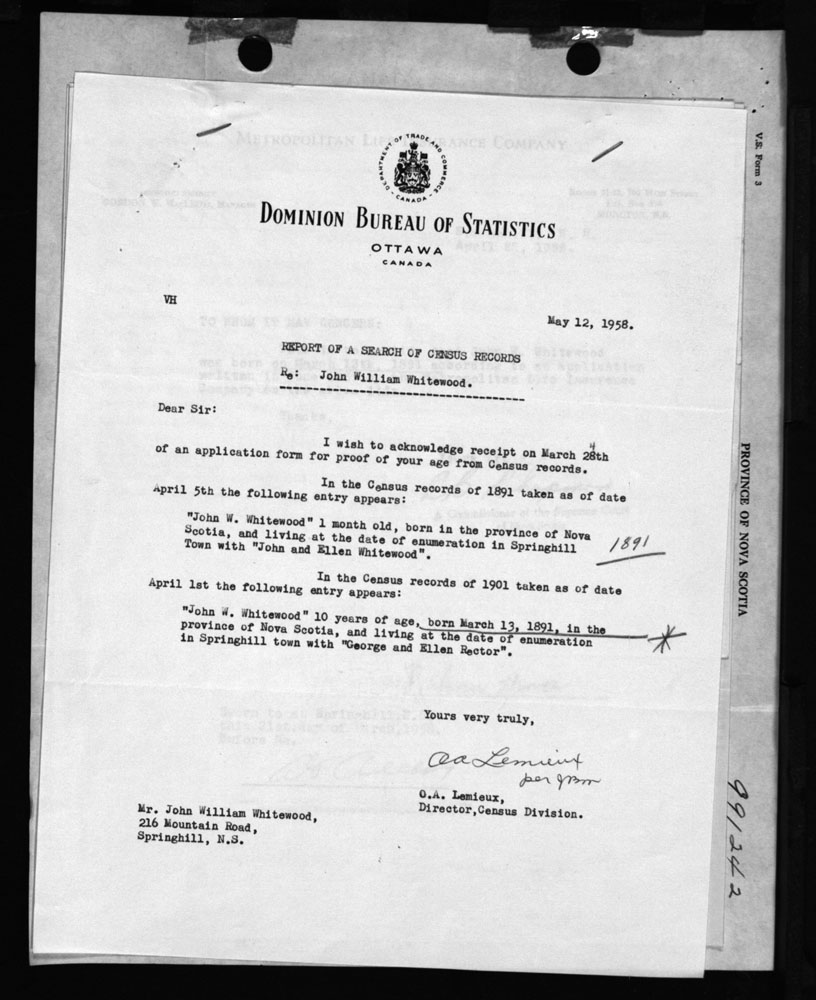 Birth Registration: Year: 1891 number: 99100242