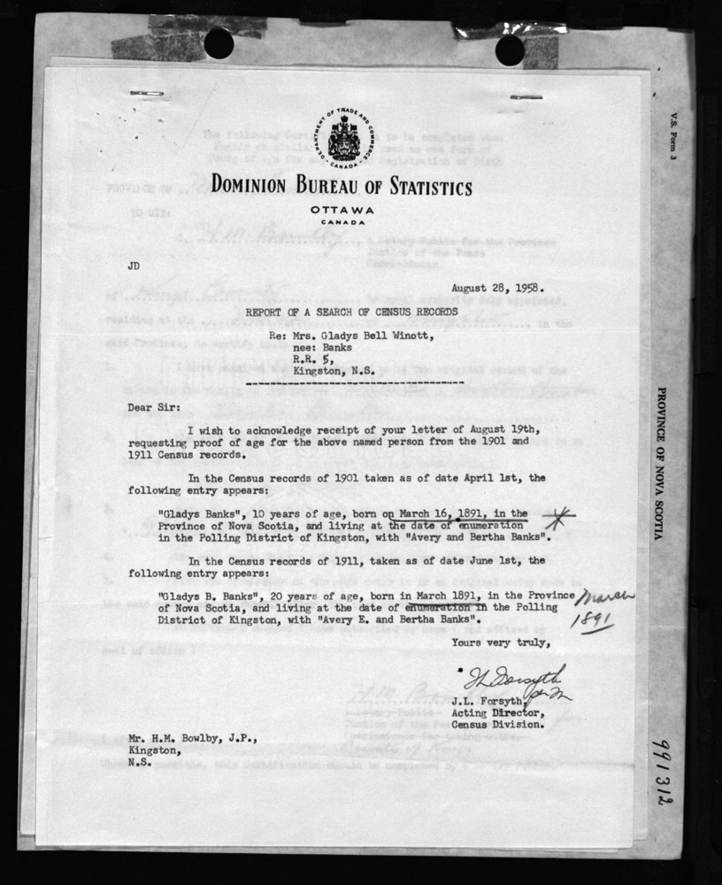 Birth Registration: Year: 1891 number: 99100312