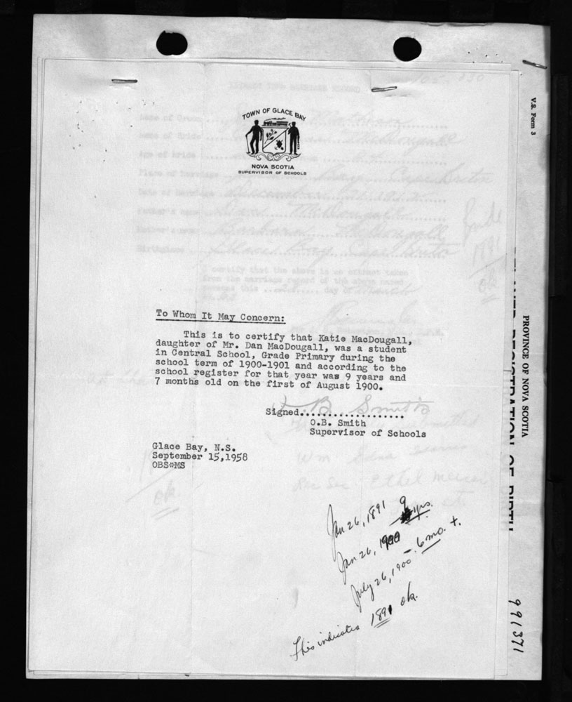 Birth Registration: Year: 1891 number: 99100371