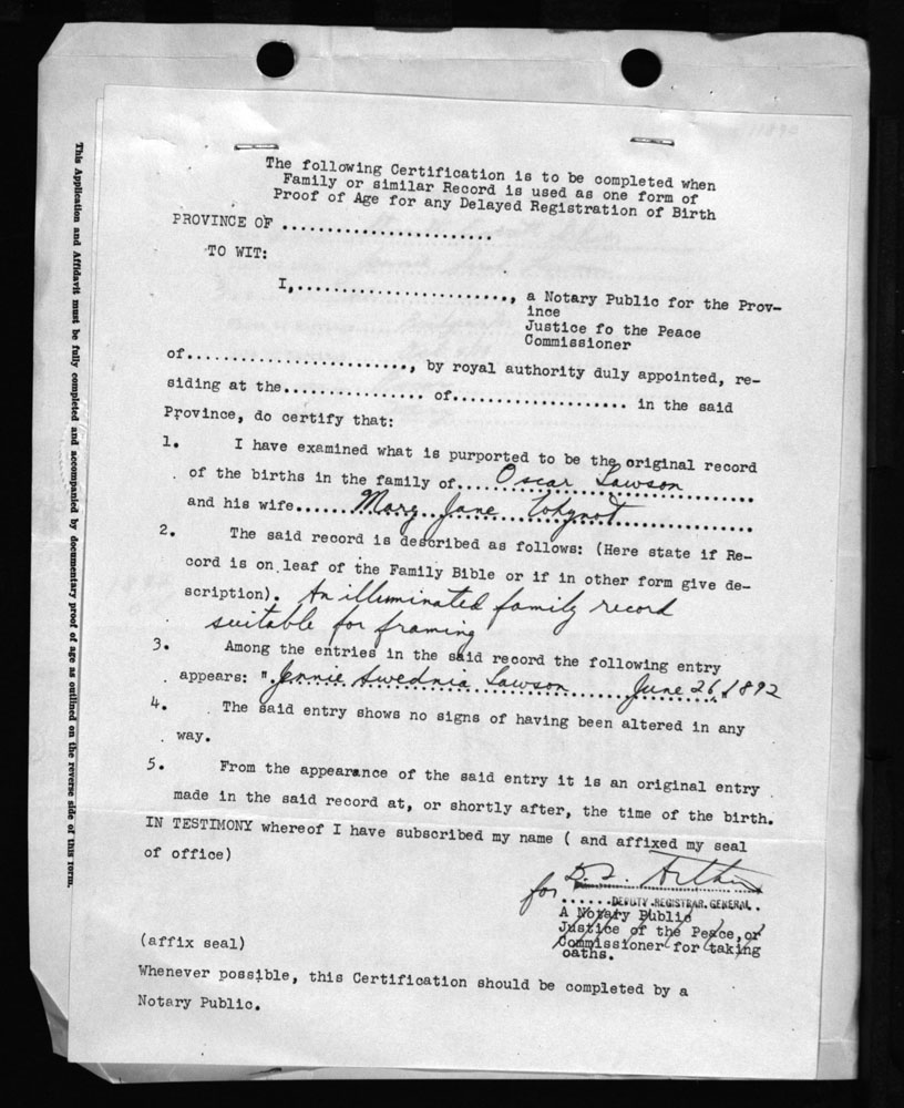 Birth Registration: Year: 1892 number: 99000837