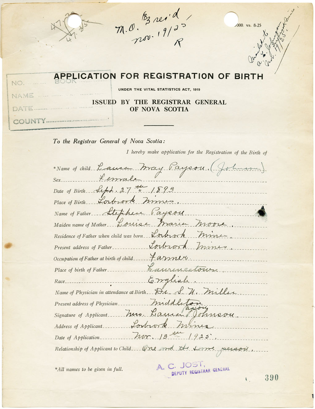 Nova Scotia Archives — https://archives.novascotia.ca/vital-statistics/birth/?ID=129907