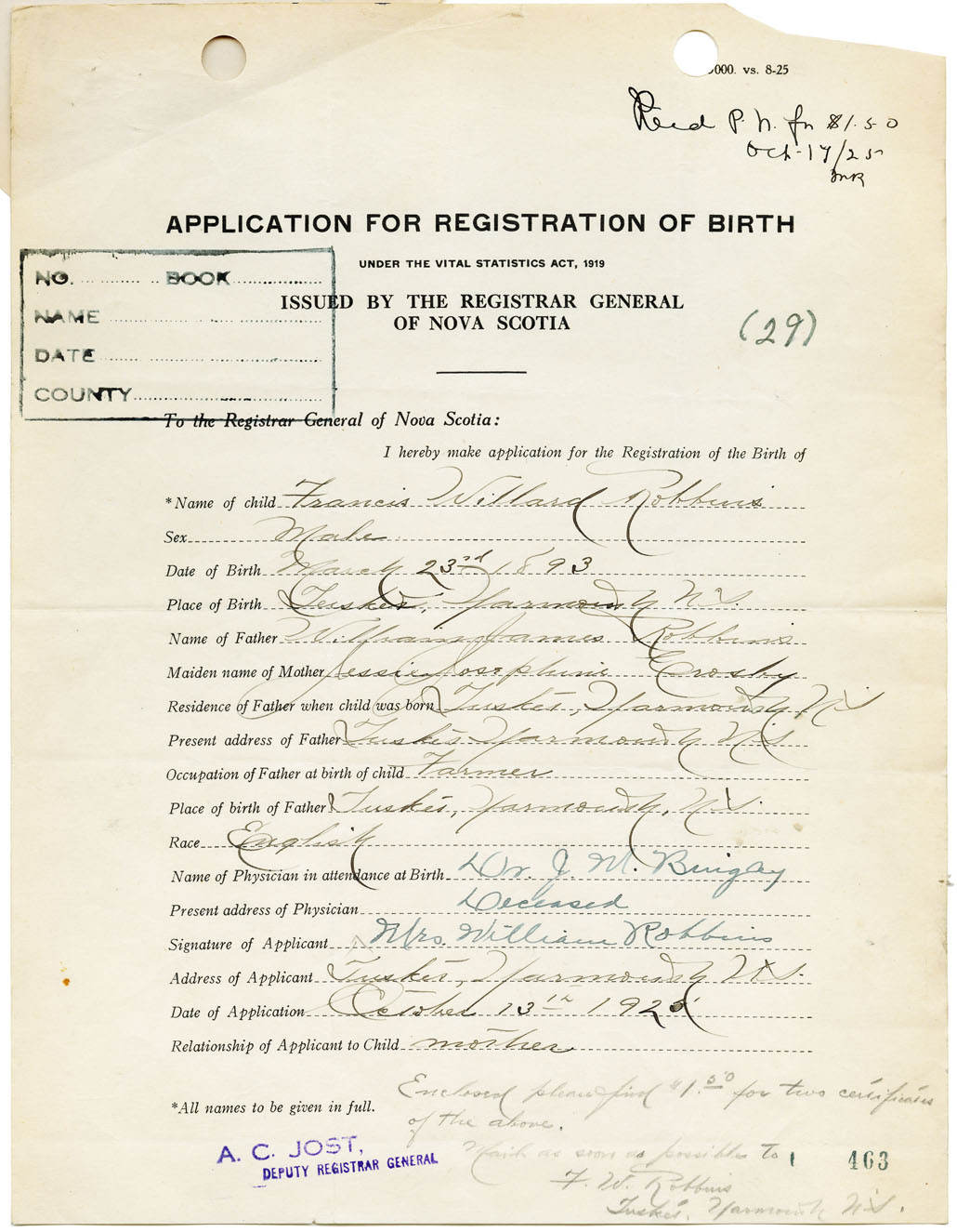 Nova Scotia Archives — https://archives.novascotia.ca/vital-statistics/birth/?ID=129910