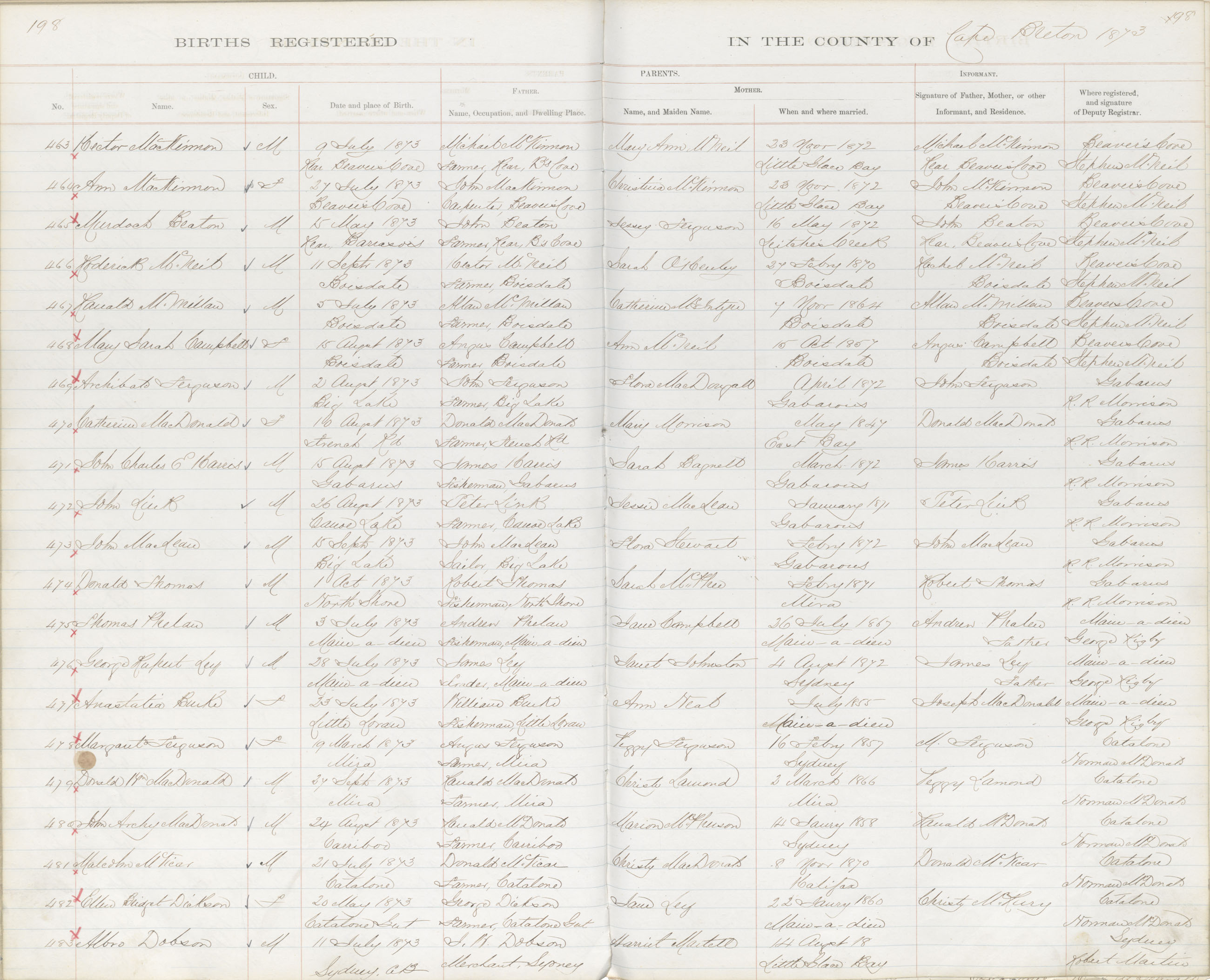 Female Birth Registration: Year: 1873 book: 1803 page: 198 number: 470