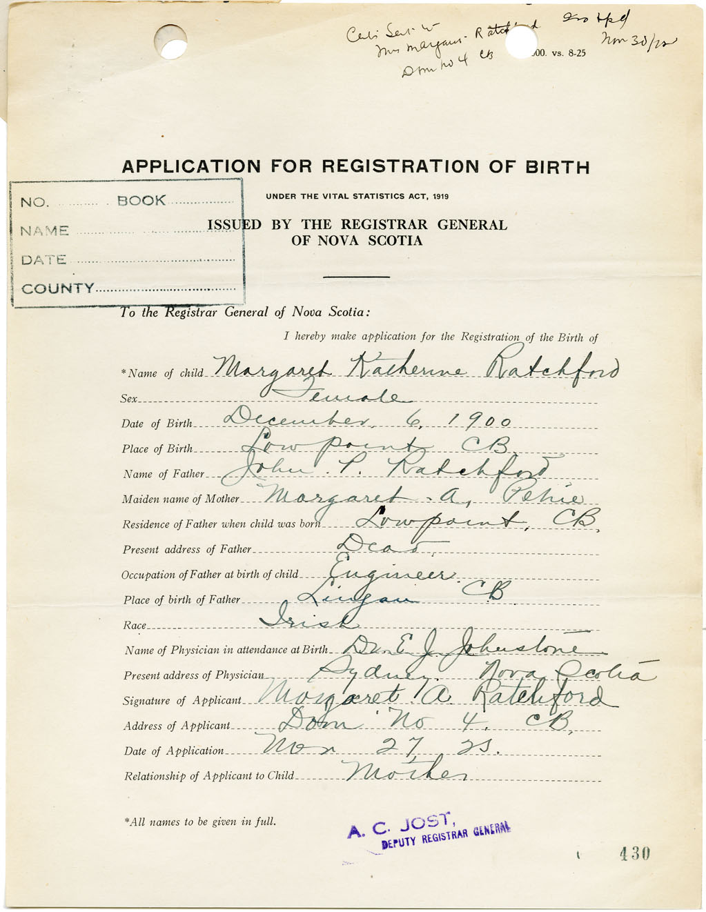 Nova Scotia Archives — https://archives.novascotia.ca/vital-statistics/birth/?ID=143686