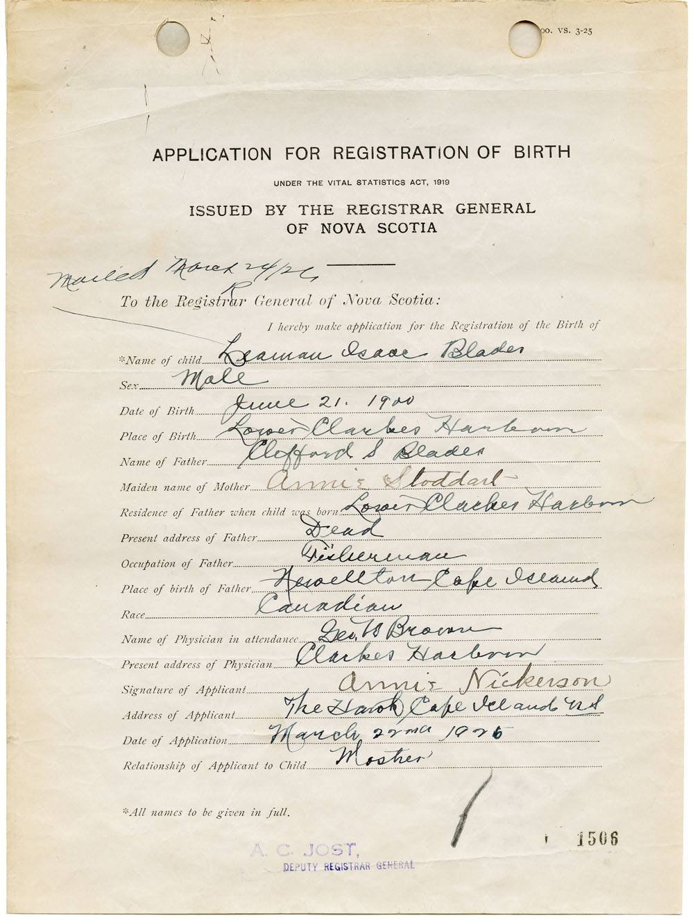 Nova Scotia Archives — https://archives.novascotia.ca/vital-statistics/birth/?ID=143734