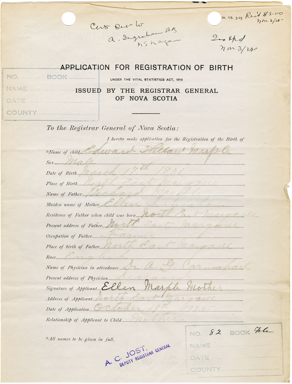 Nova Scotia Archives — https://archives.novascotia.ca/vital-statistics/birth/?ID=145861