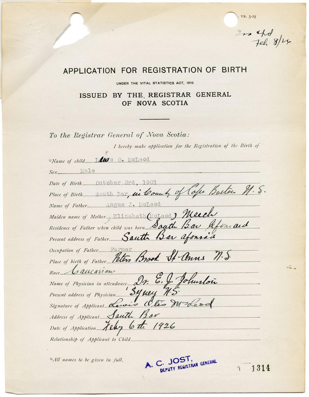 Nova Scotia Archives — https://archives.novascotia.ca/vital-statistics/birth/?ID=145920