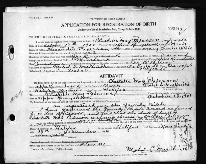 Nova Scotia Archives — https://archives.novascotia.ca/vital-statistics/birth/?ID=146053
