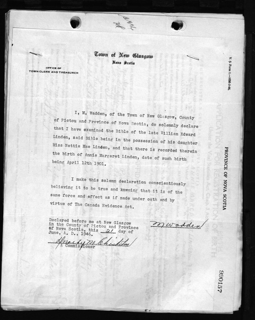 Nova Scotia Archives — https://archives.novascotia.ca/vital-statistics/birth/?ID=146096