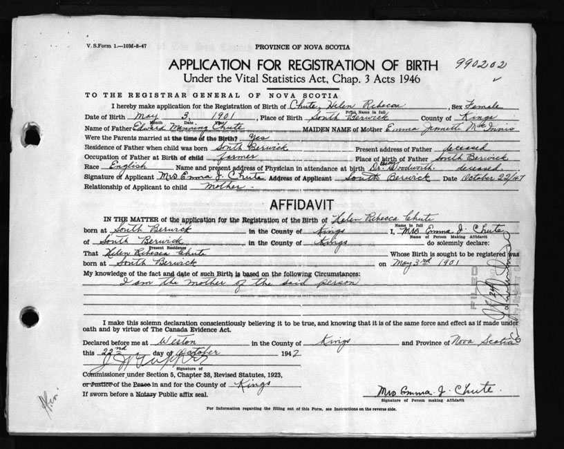 Nova Scotia Archives — https://archives.novascotia.ca/vital-statistics/birth/?ID=146141