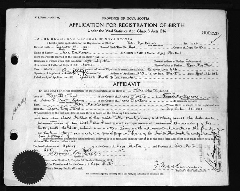 Nova Scotia Archives — https://archives.novascotia.ca/vital-statistics/birth/?ID=146159