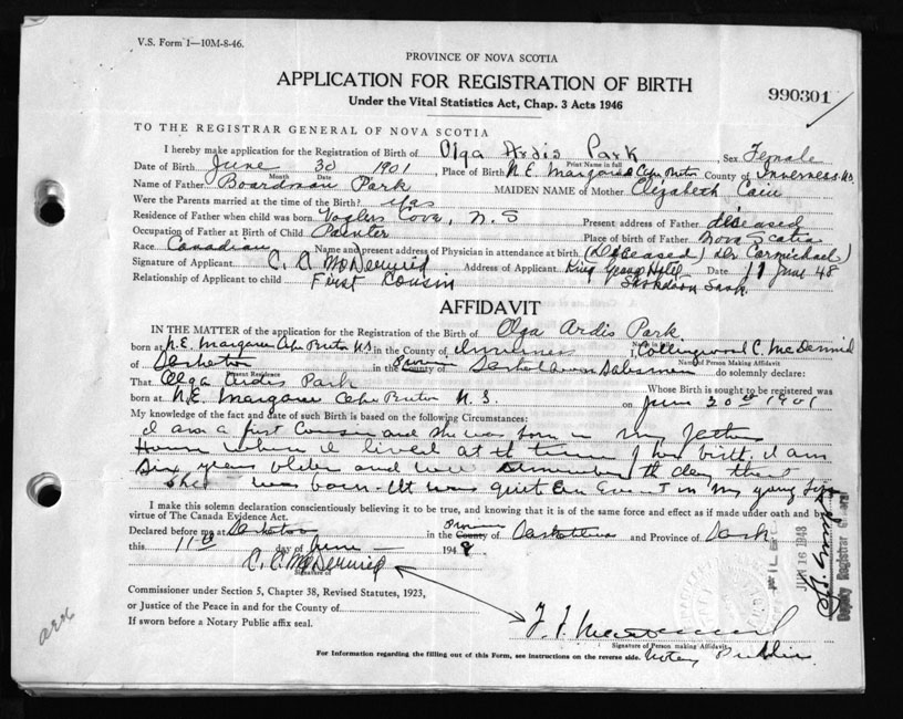 Nova Scotia Archives — https://archives.novascotia.ca/vital-statistics/birth/?ID=146240
