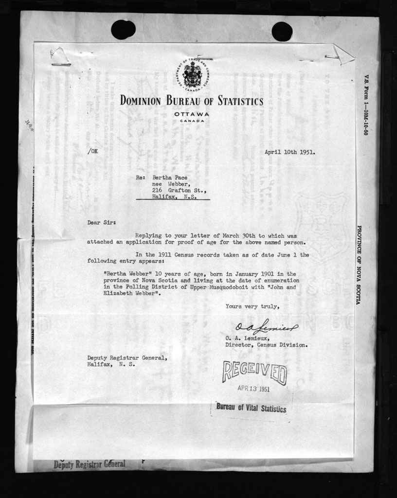 Nova Scotia Archives — https://archives.novascotia.ca/vital-statistics/birth/?ID=146416