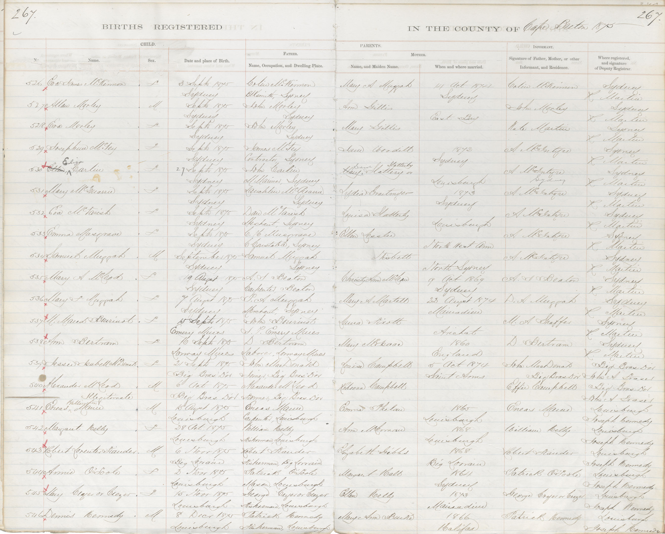 Male Birth Registration: Year: 1875 book: 1803 page: 267 number: 546