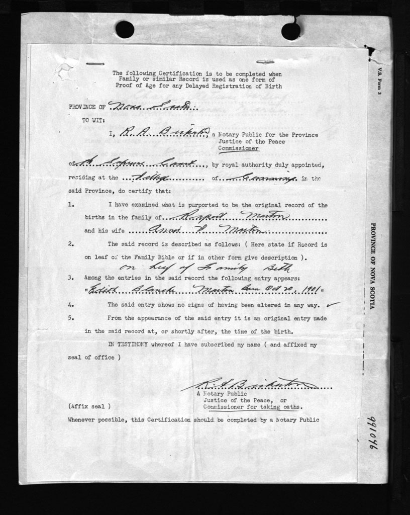 Nova Scotia Archives — https://archives.novascotia.ca/vital-statistics/birth/?ID=146981