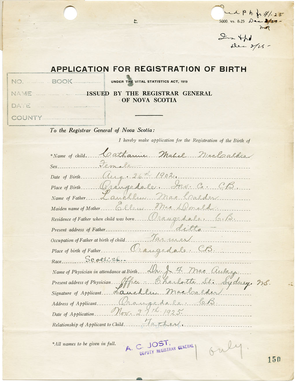 Nova Scotia Archives — https://archives.novascotia.ca/vital-statistics/birth/?ID=148096