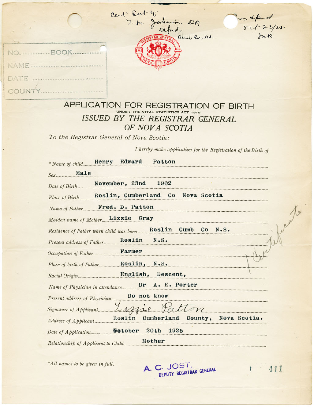 Nova Scotia Archives — https://archives.novascotia.ca/vital-statistics/birth/?ID=148110