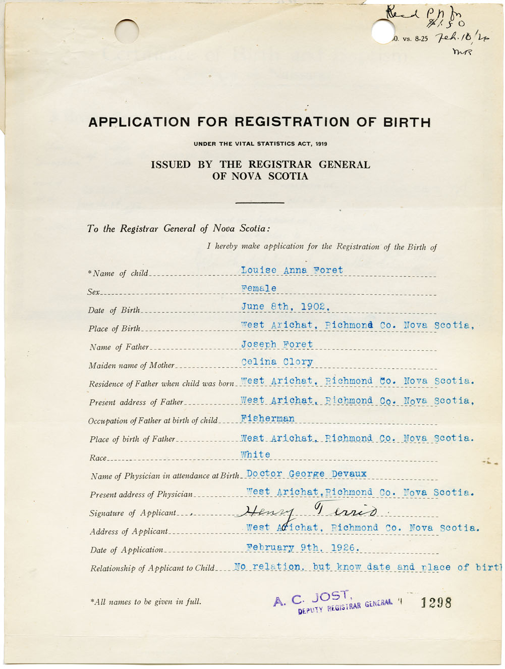 Nova Scotia Archives — https://archives.novascotia.ca/vital-statistics/birth/?ID=148160