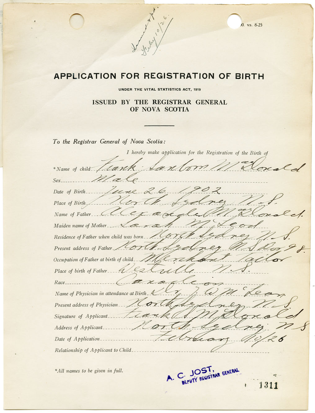 Nova Scotia Archives — https://archives.novascotia.ca/vital-statistics/birth/?ID=148162