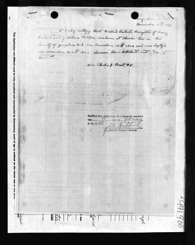 Birth Registration: Year: 1902 number: 99100900