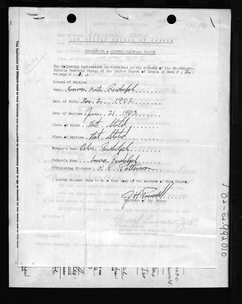 Birth Registration: Year: 1902 number: 99200010
