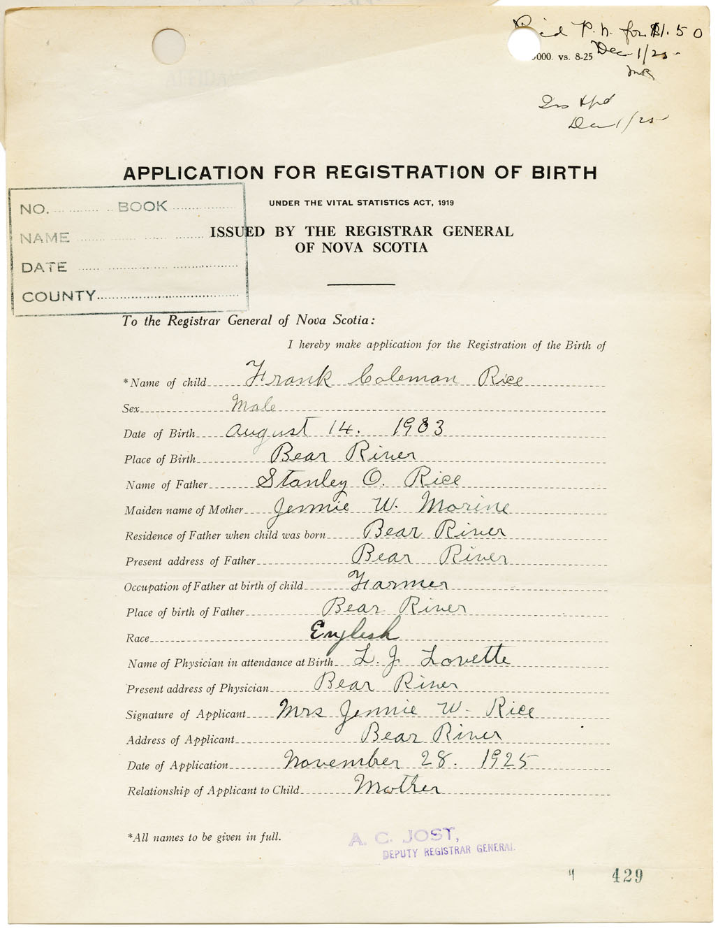 Nova Scotia Archives — https://archives.novascotia.ca/vital-statistics/birth/?ID=150494