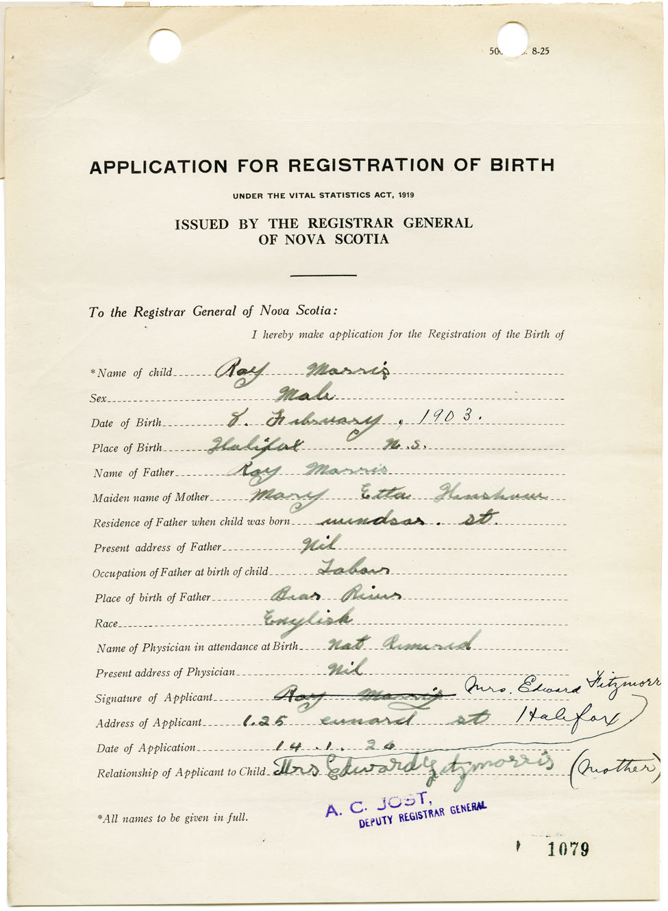 Male Birth Registration: Year: 1903 number: 93301079