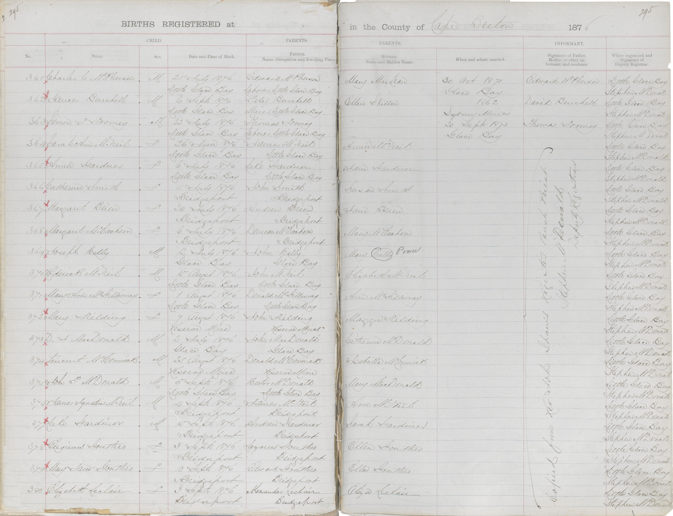 Male Birth Registration: Year: 1876 book: 1803 page: 295 number: 375