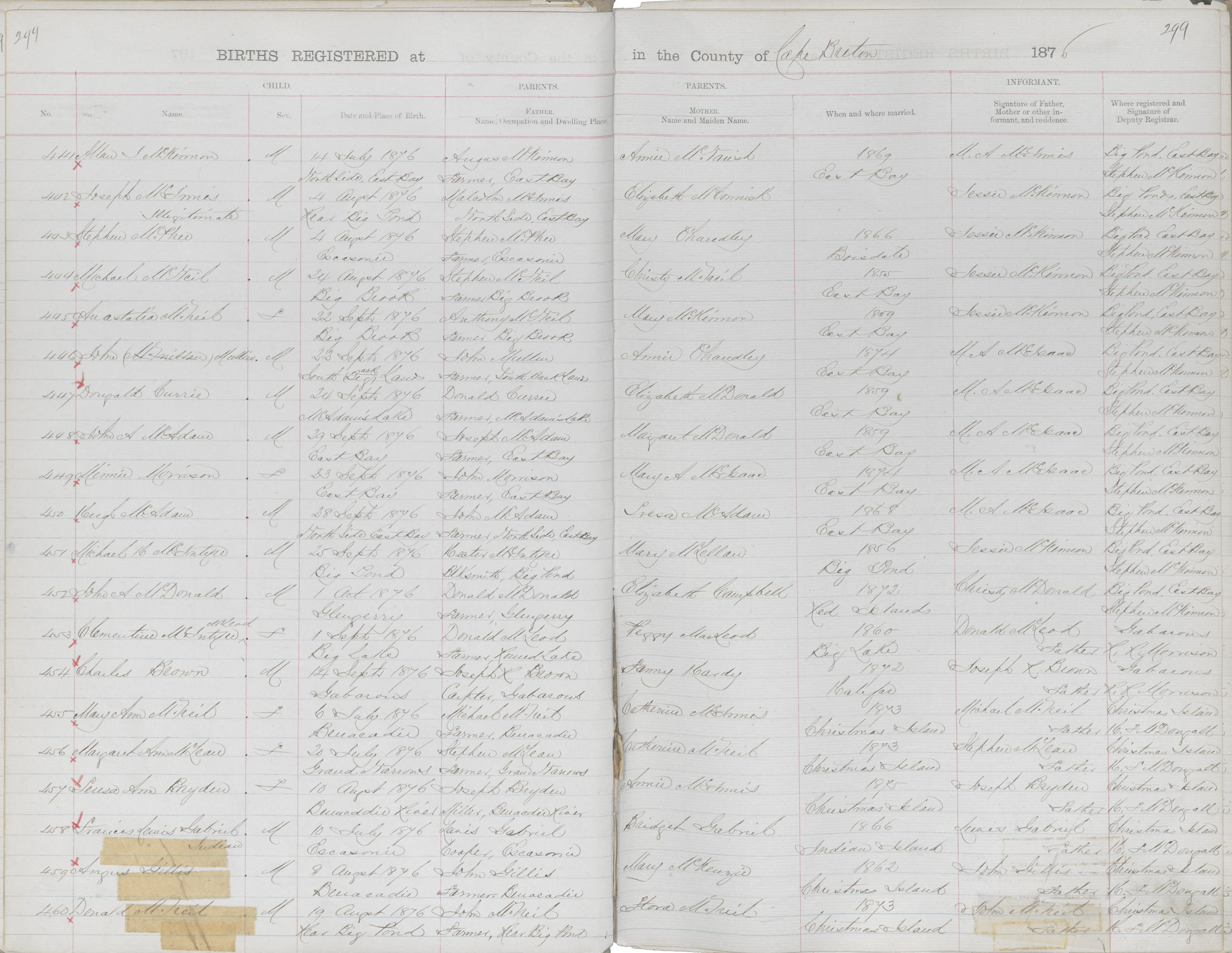 Male Birth Registration: Year: 1876 book: 1803 page: 299 number: 452
