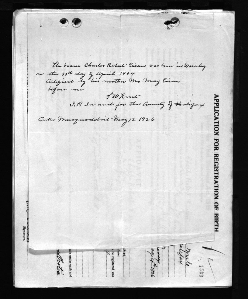 Birth Registration: Year: 1904 number: 67801522